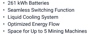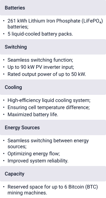 - Reserved space for up to 6 Bitcoin (BTC) mining machines.