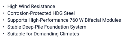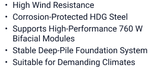 The system reduces installation time, minimizes site disruption, and lowers overall balance-of-system costs. It also enables faster project timelines from permitting to commissioning.
